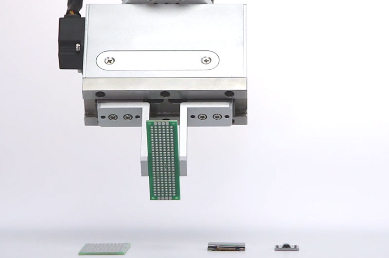 卡西姆电动夹爪夹持工件,快速、无损、灵活夹取大小不一的电子元器件,节省资源,提高 效率。